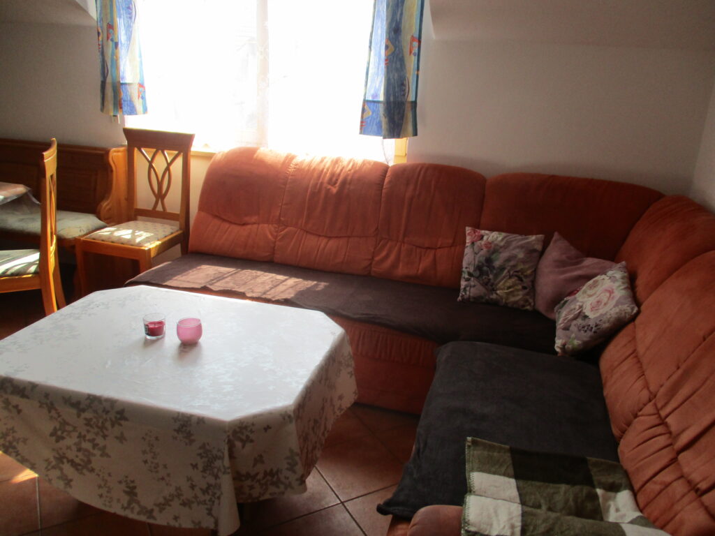 Die helle Wohnung befindet sich im Obergeschoss und hat eine Größe 76 m2. Sie beinhalten 3 Schlafräume Bad, Wohnküche und Balkon für 7 Personen