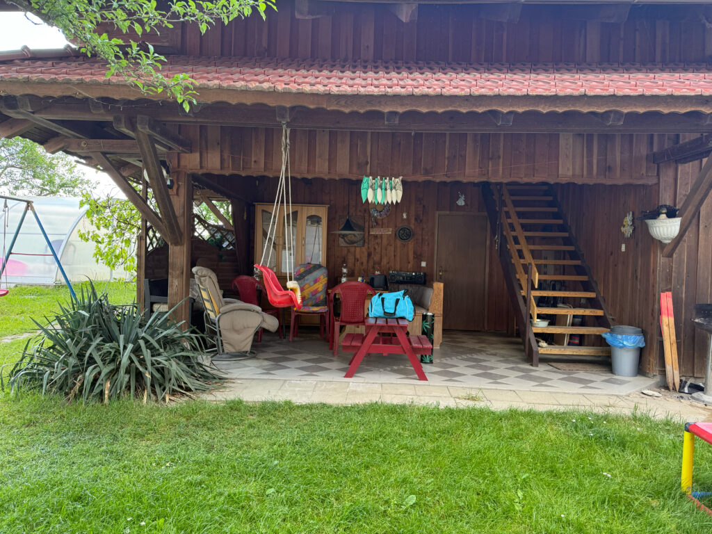befindet sich sehr ruhig gelegen in mitten von Feldern und Wiesen in Waldnähe in einer Sackgasse. Hierr die Seele baumeln Passen und die Naturgeniesen.